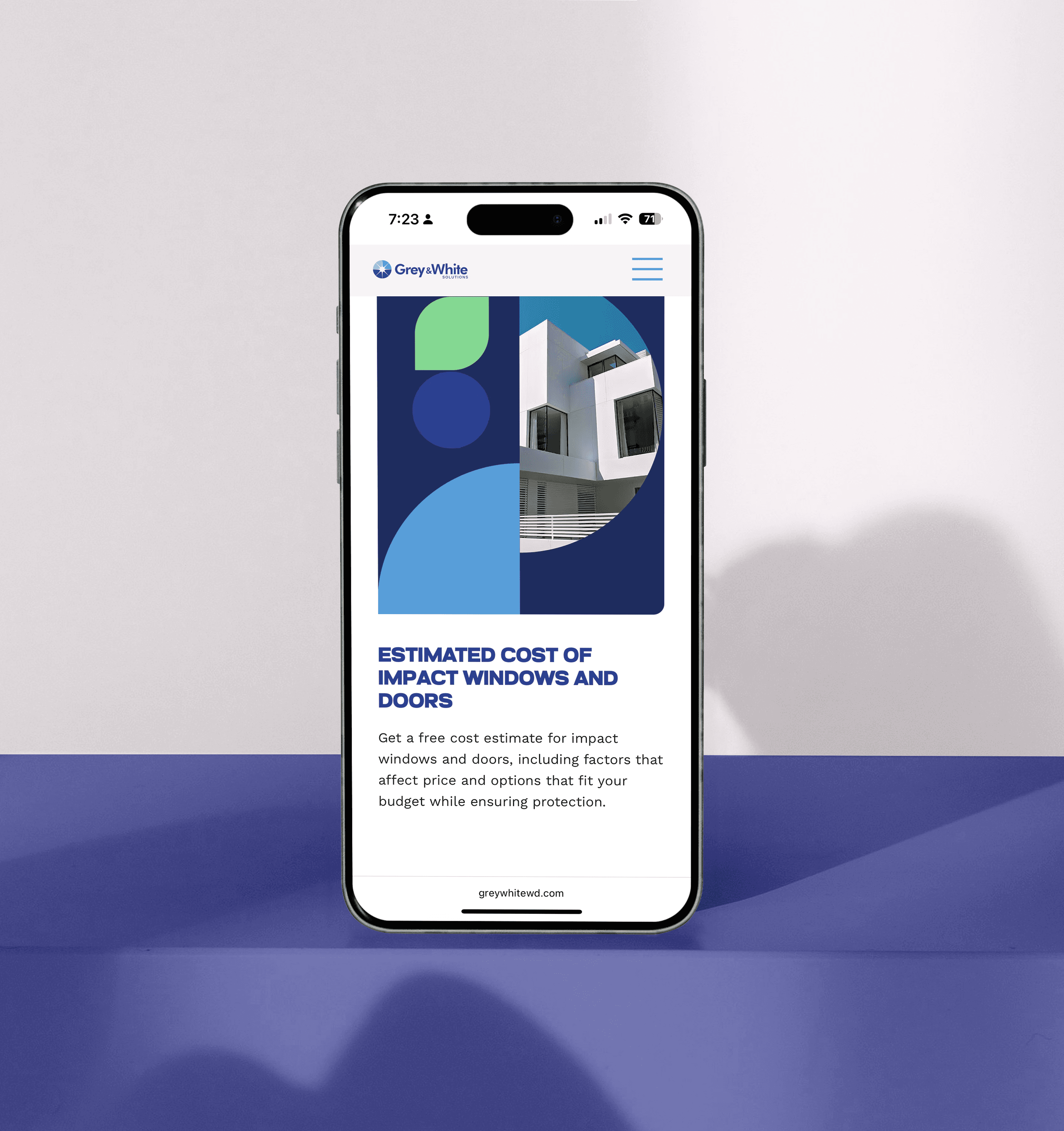Refinement and expansion of Grey & White’s brand identity, design and launch of a high-converting website, and development of a digital strategy to position the company as an expert in impact window and door installation.