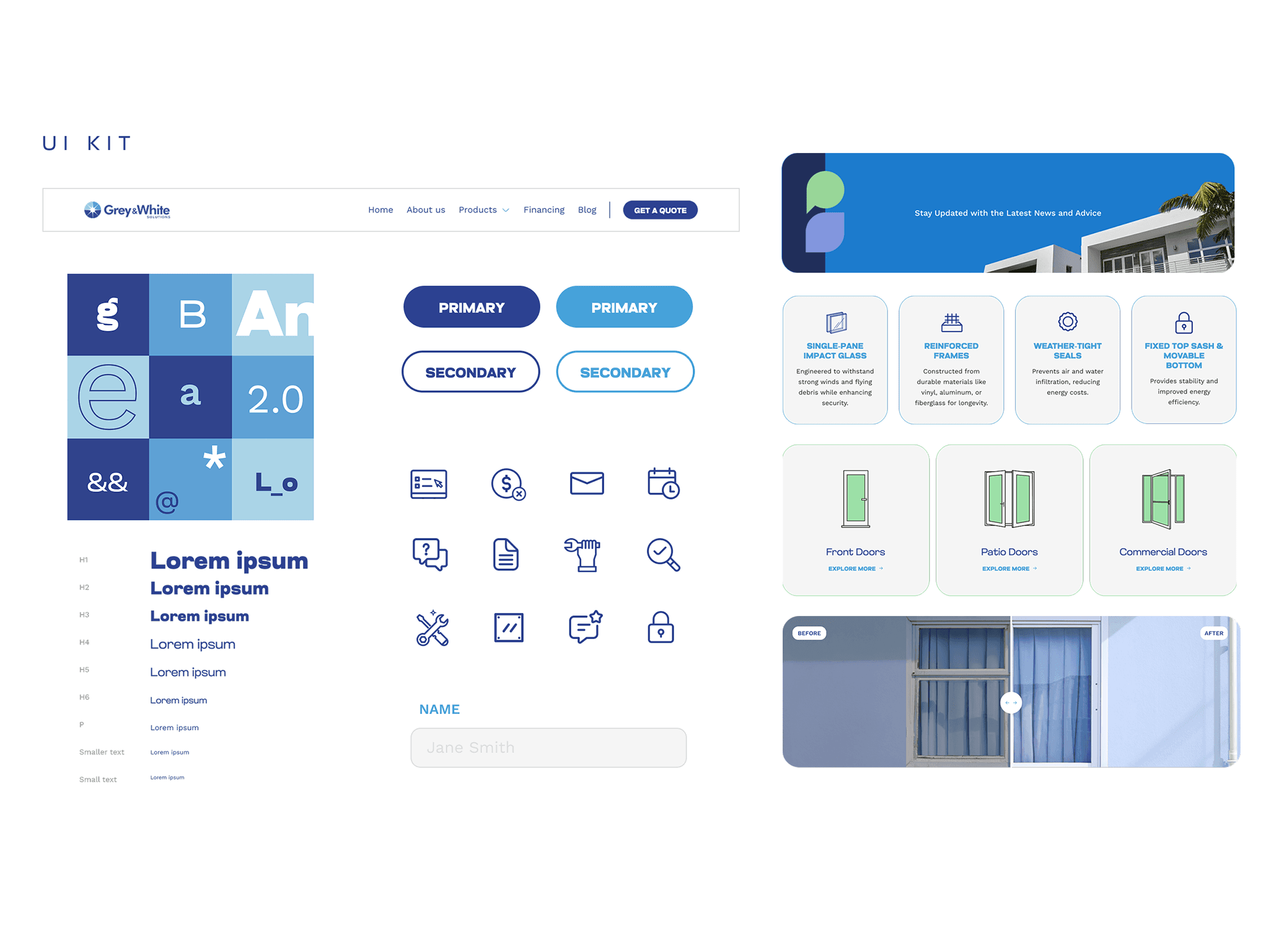 Refinement and expansion of Grey & White’s brand identity, design and launch of a high-converting website, and development of a digital strategy to position the company as an expert in impact window and door installation.